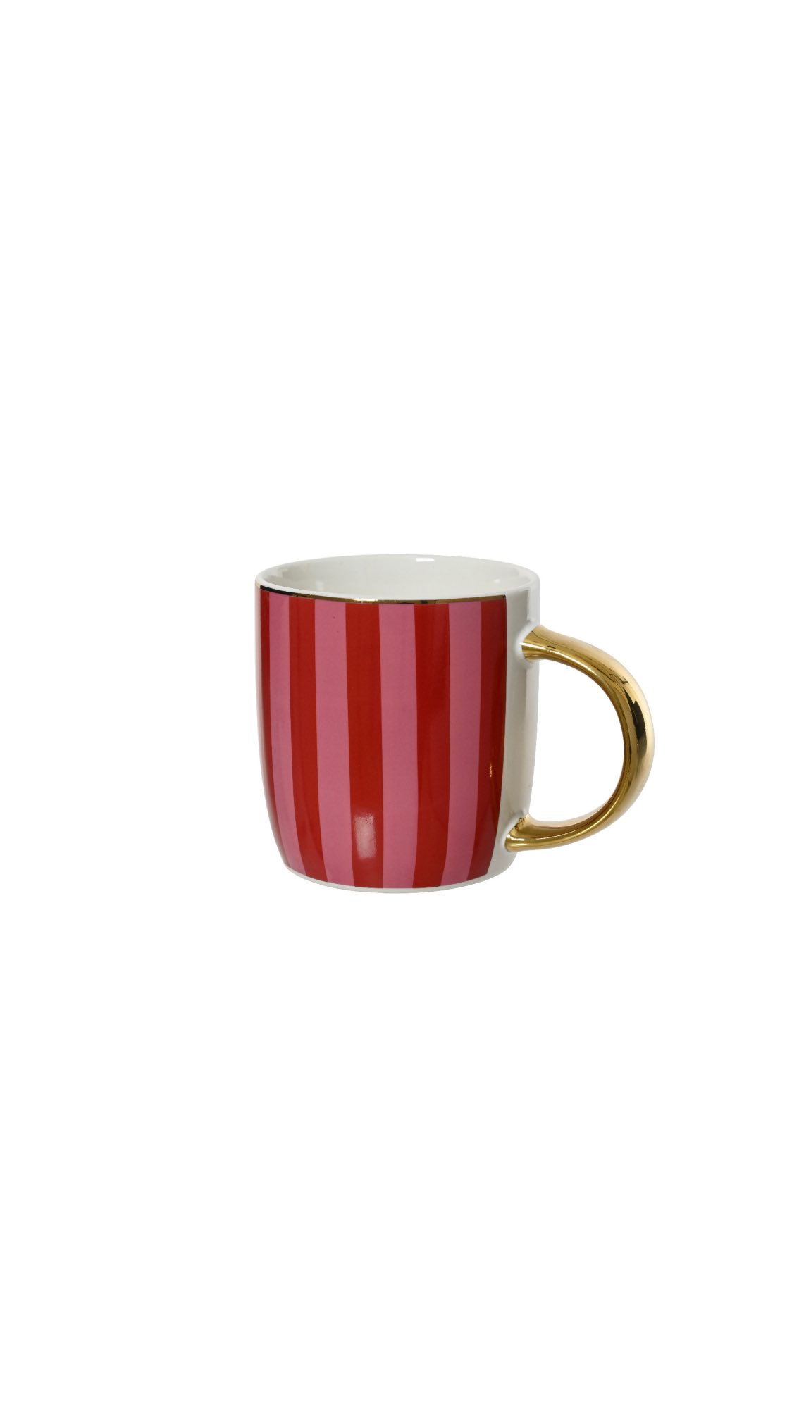 Κούπα πορσελάνης ριγέ με μπορντό και ροζ ρίγες και χρυσό χερούλι